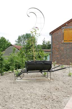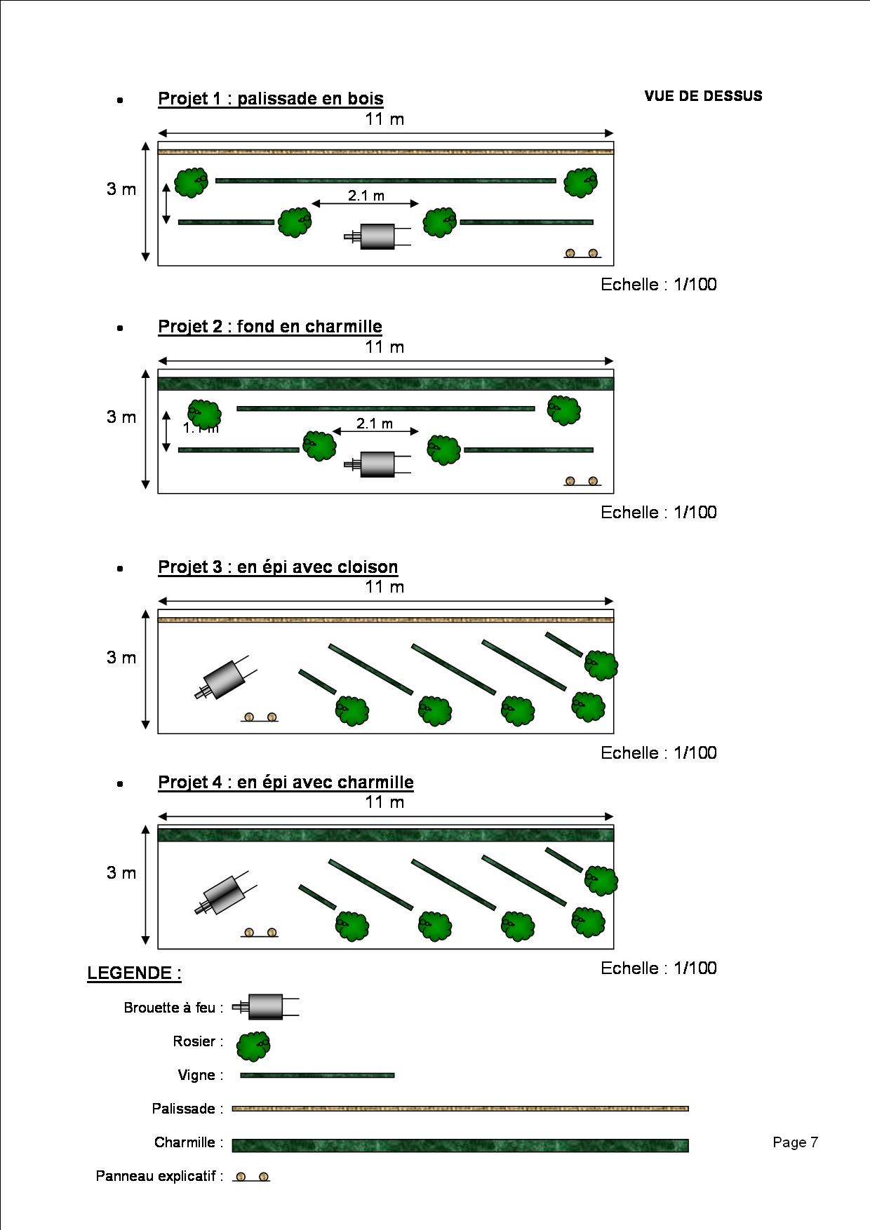 L'objectif était d'aménager un massif de plante sur une aire de stationnement, en conservant du stationnement et restant dans les thèmes d'aménagement de la commune : le terroir et la viticulture. Le thème de BROUETTE A FEU et la plantation de la vigne a été retenu.