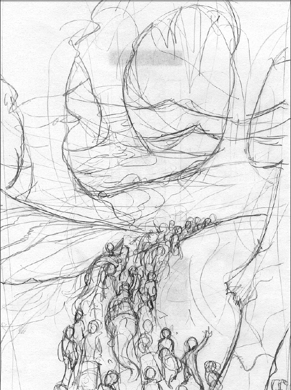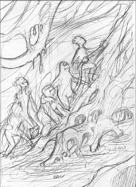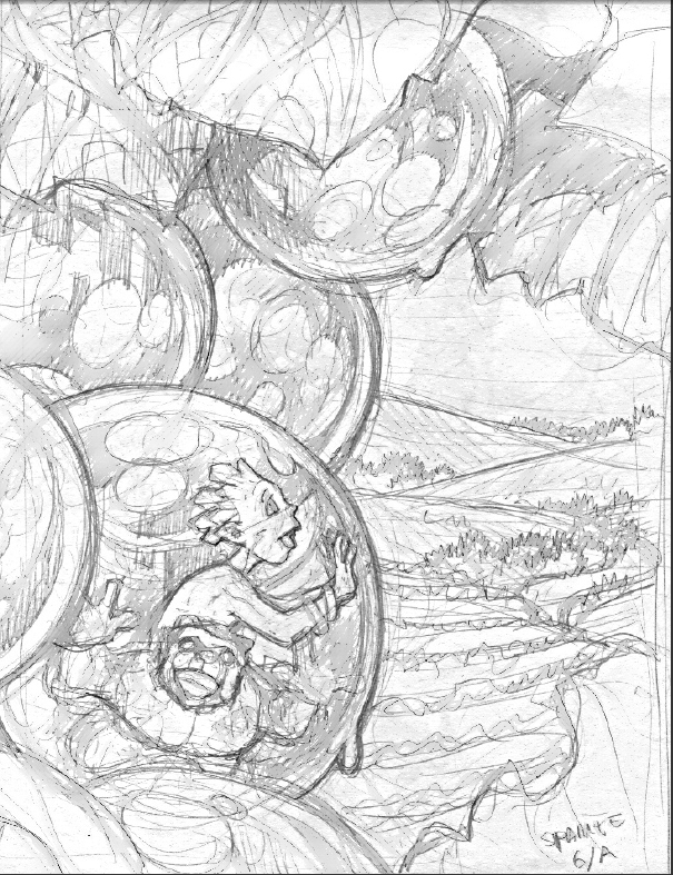 | Le tout premier croquis de PASKAL POUR illustrer l'histoire de SPARITE : Septembre 2009