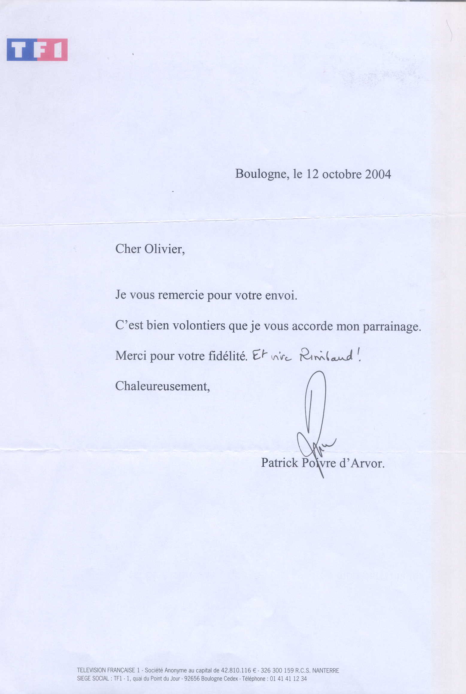 Lettre d'encouragement de M. Patrick Poivre d'Arvor , un Rimbaldien convaincu.